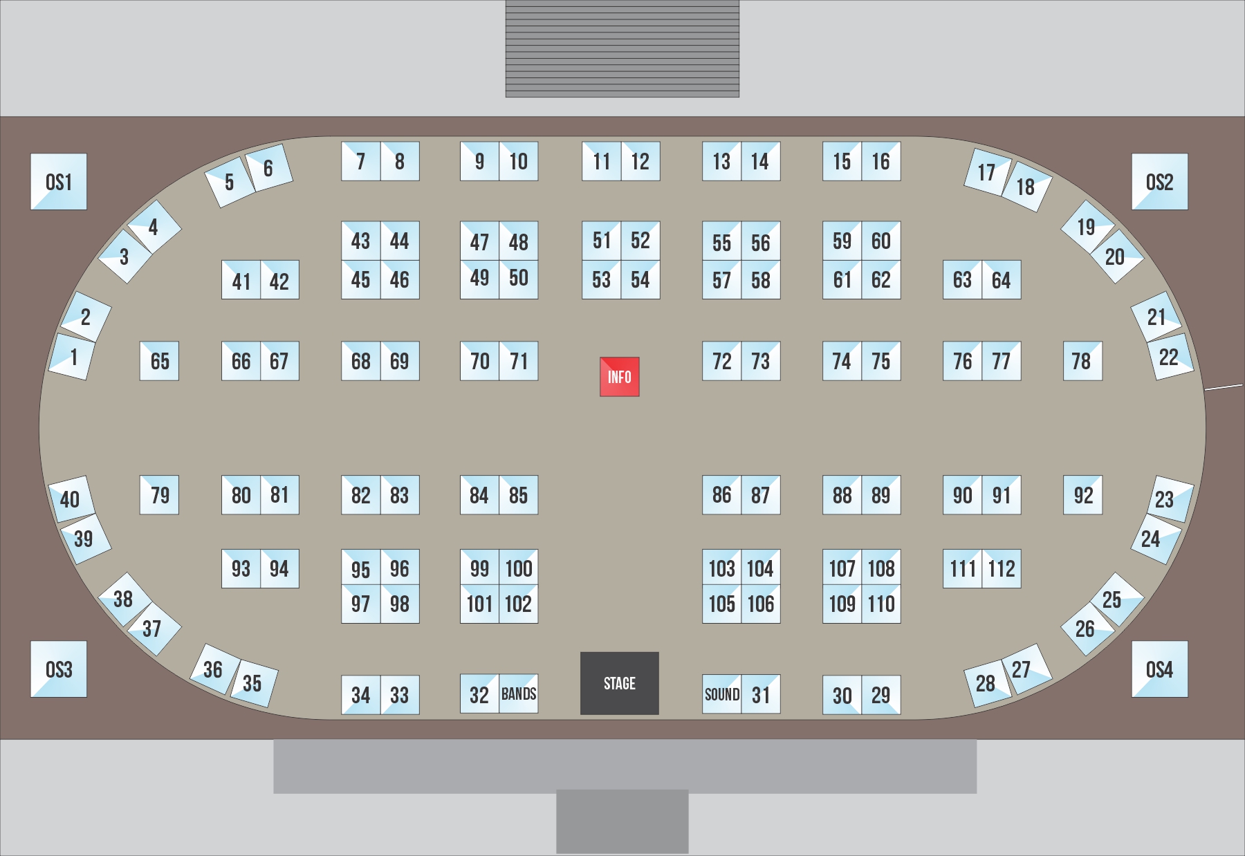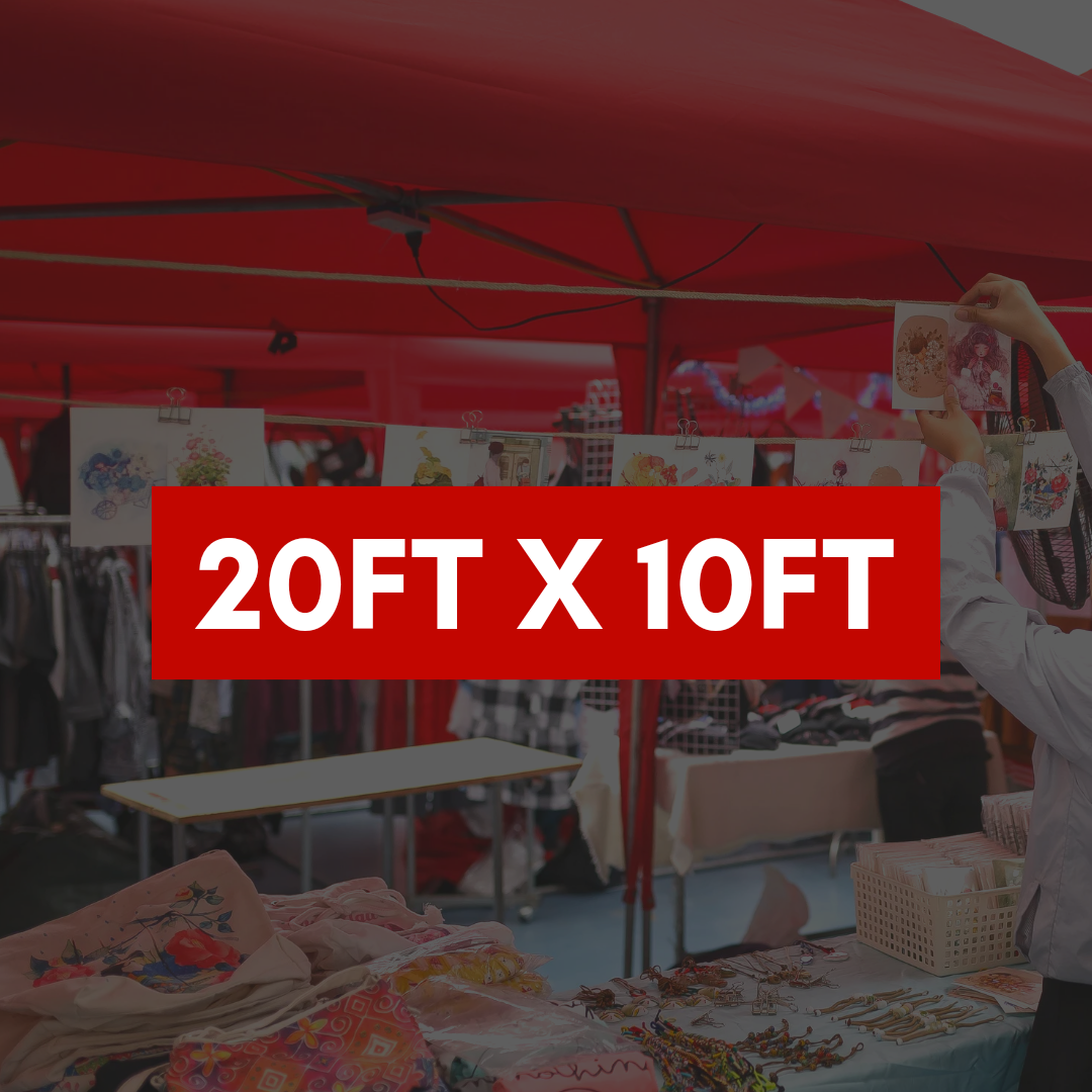 Get a 20×20 space corner space under the arena in the product vendor area.